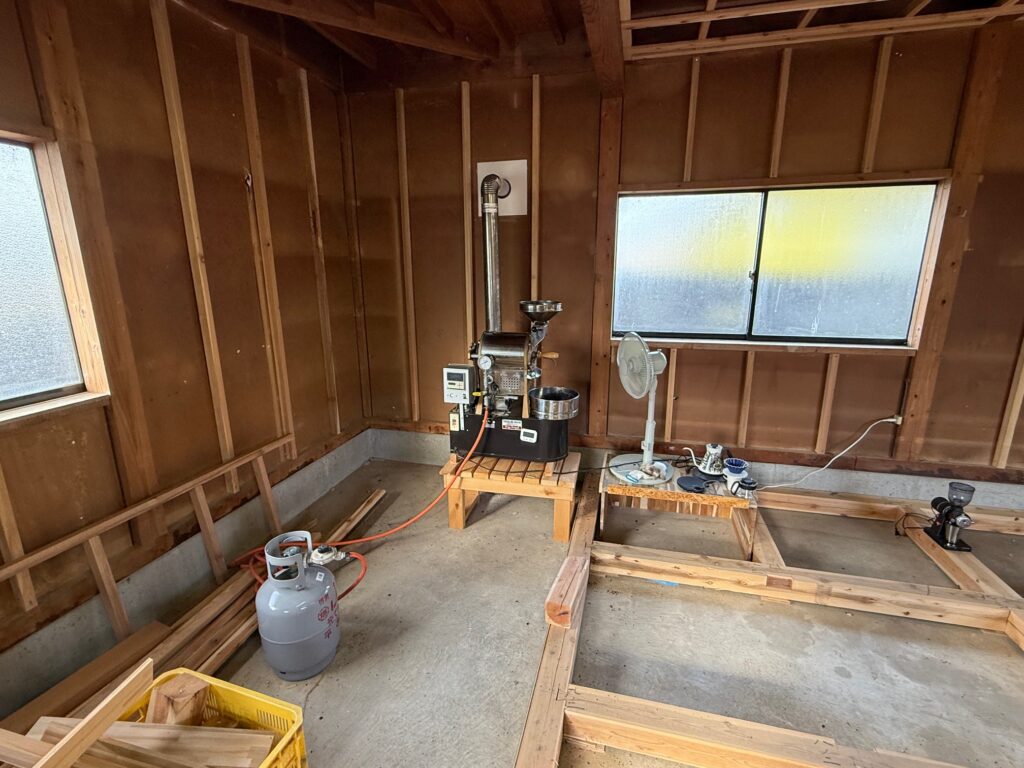 空き家(柳瀬地区中町)だった車庫に焙煎機が設置されました💓 今年中にコーヒー豆の販売が始まります🌟